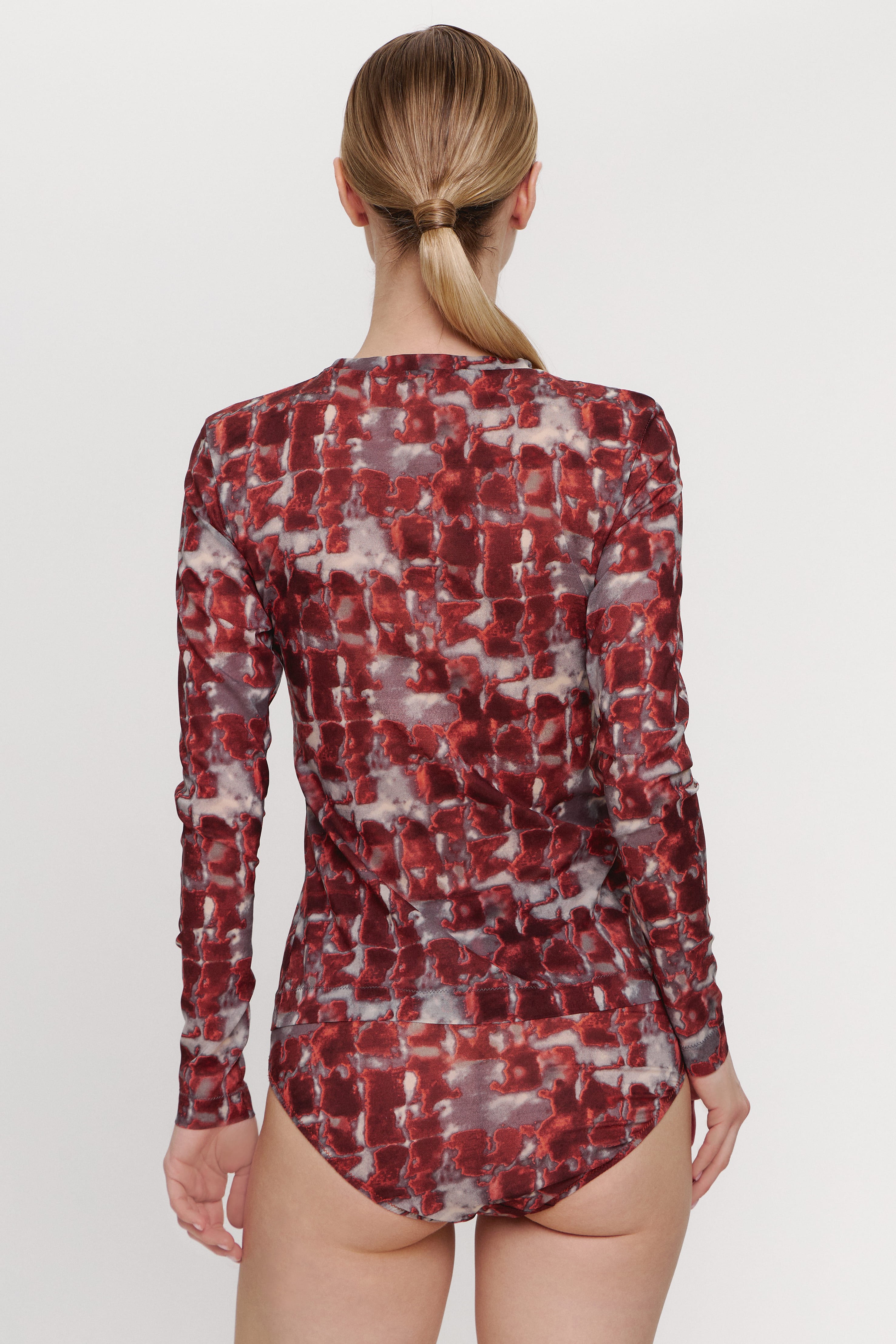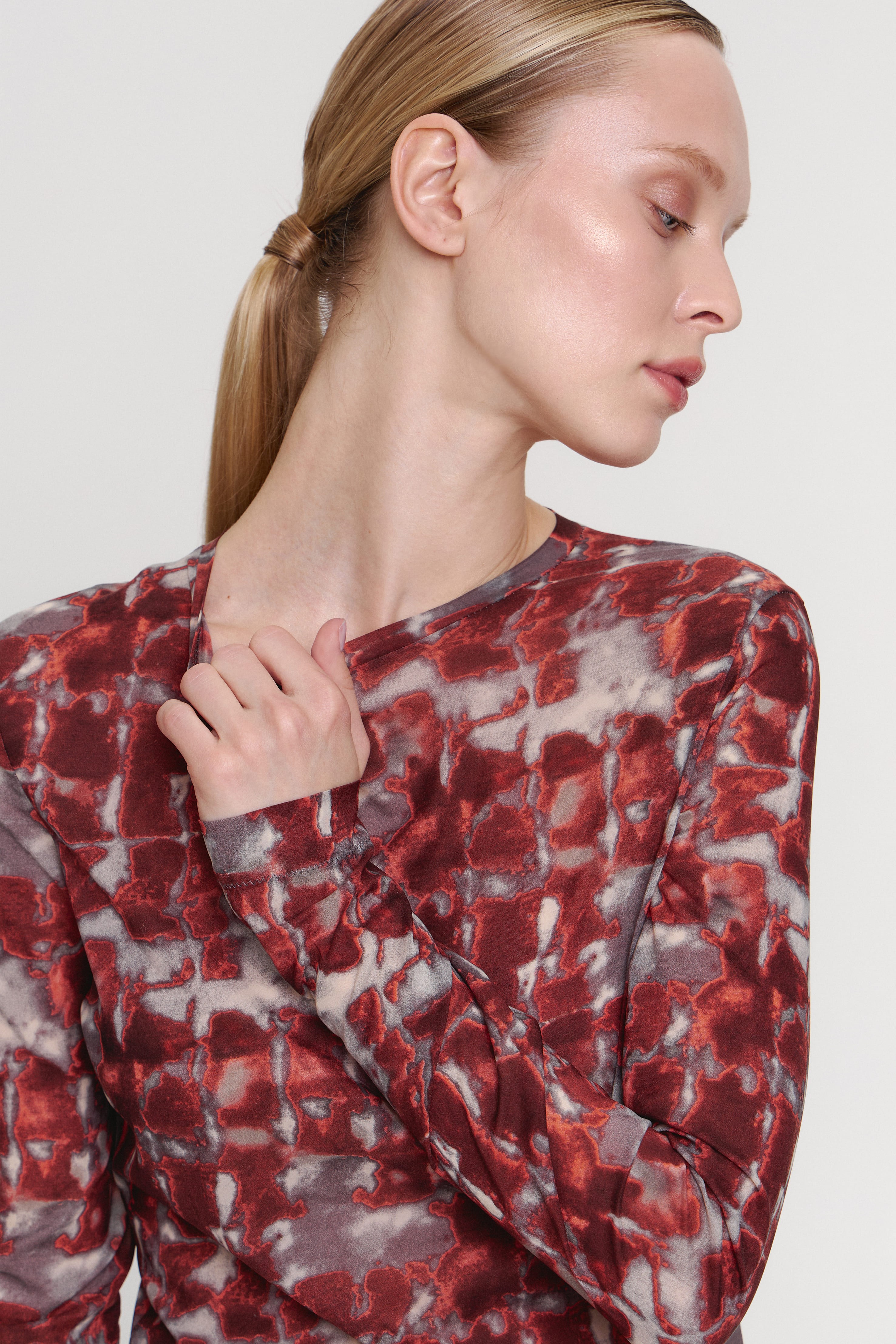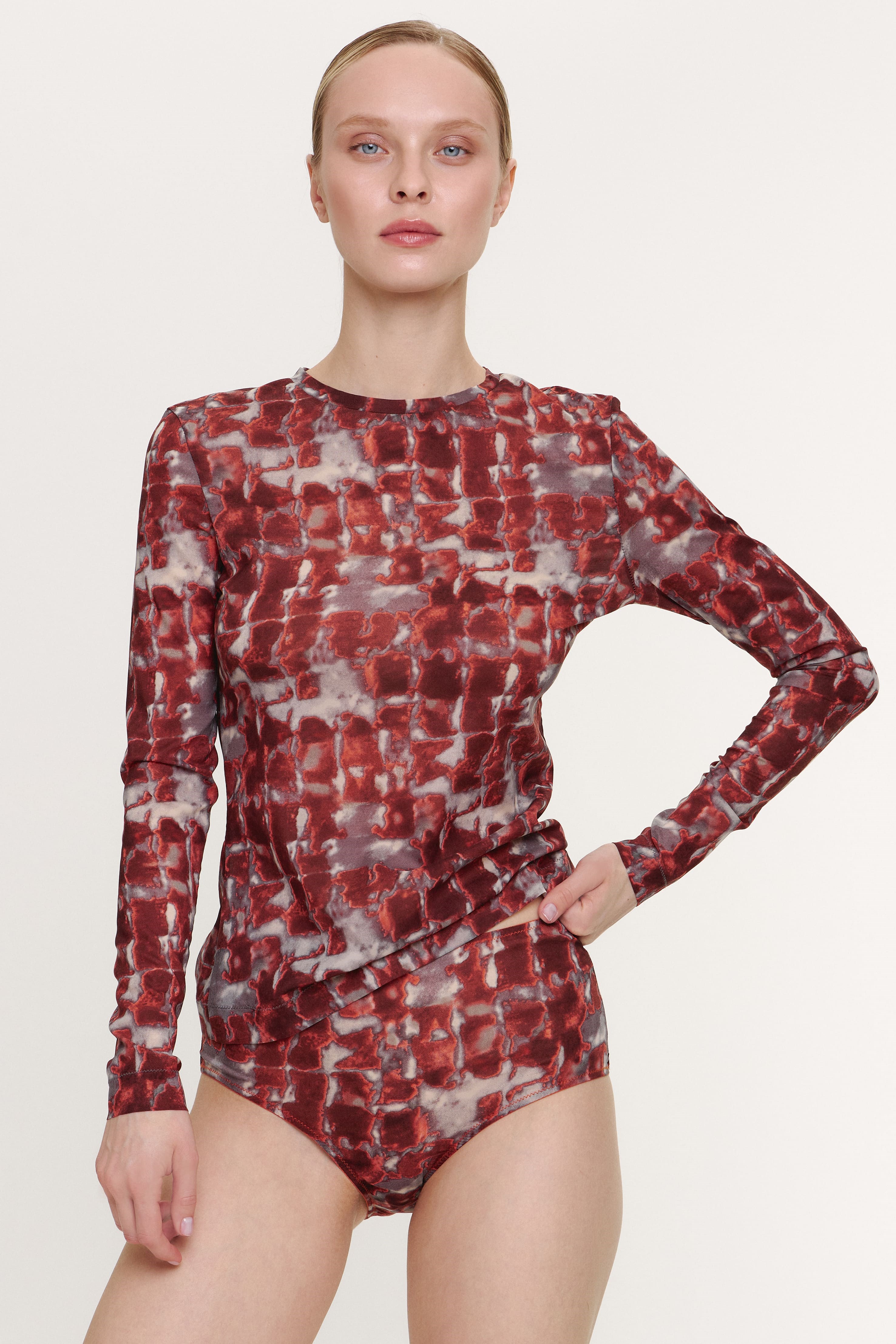 Лонгслив Rosso Francia, из эластичного шифона с натуральным шелком.Полуприлегающий силуэт, длинный рукав. Обтачка из основного материала по горловине изделия.