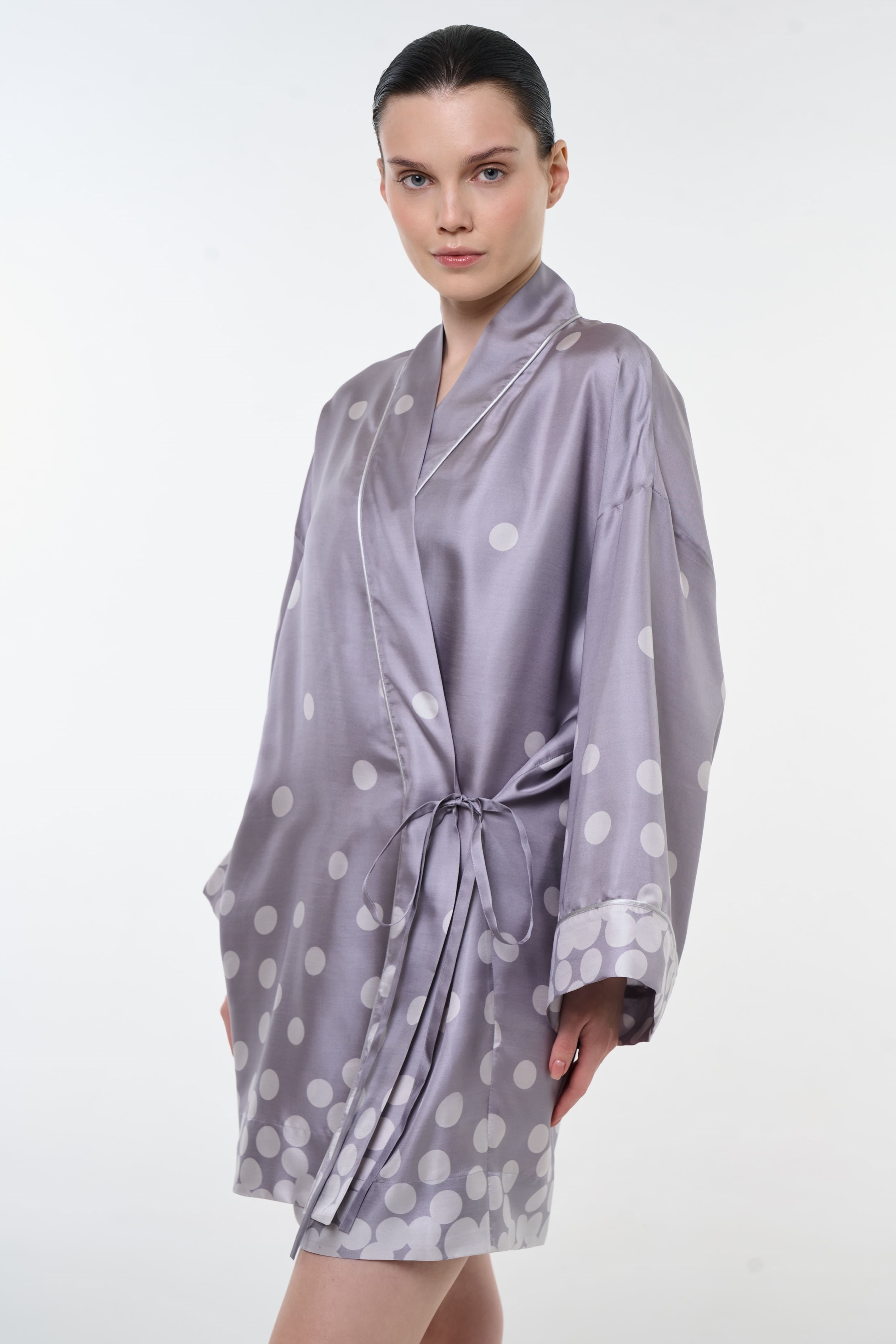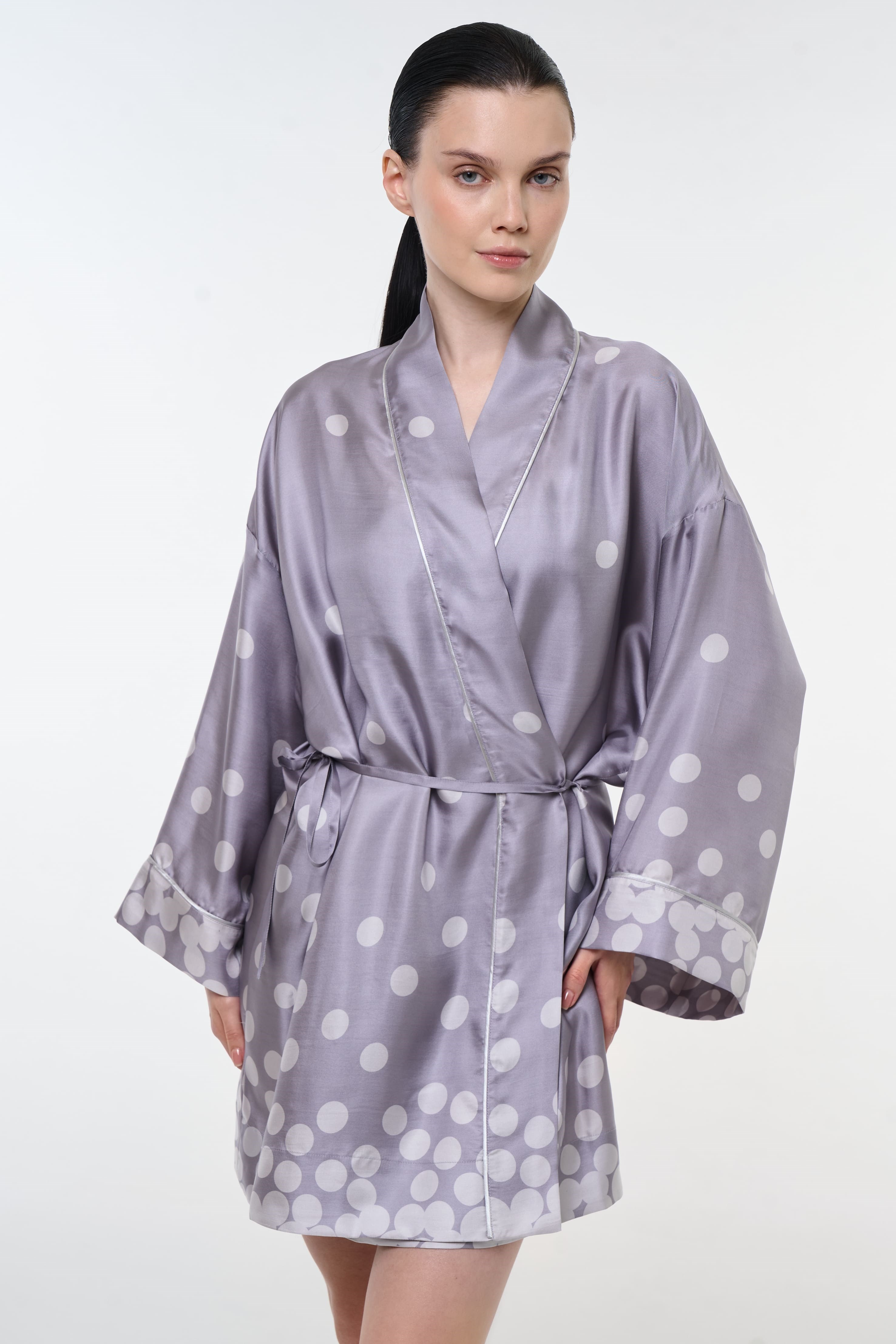 Платье-кимоно из шелка Малберри, Бин Бин / Bing Bing, Светло-серый