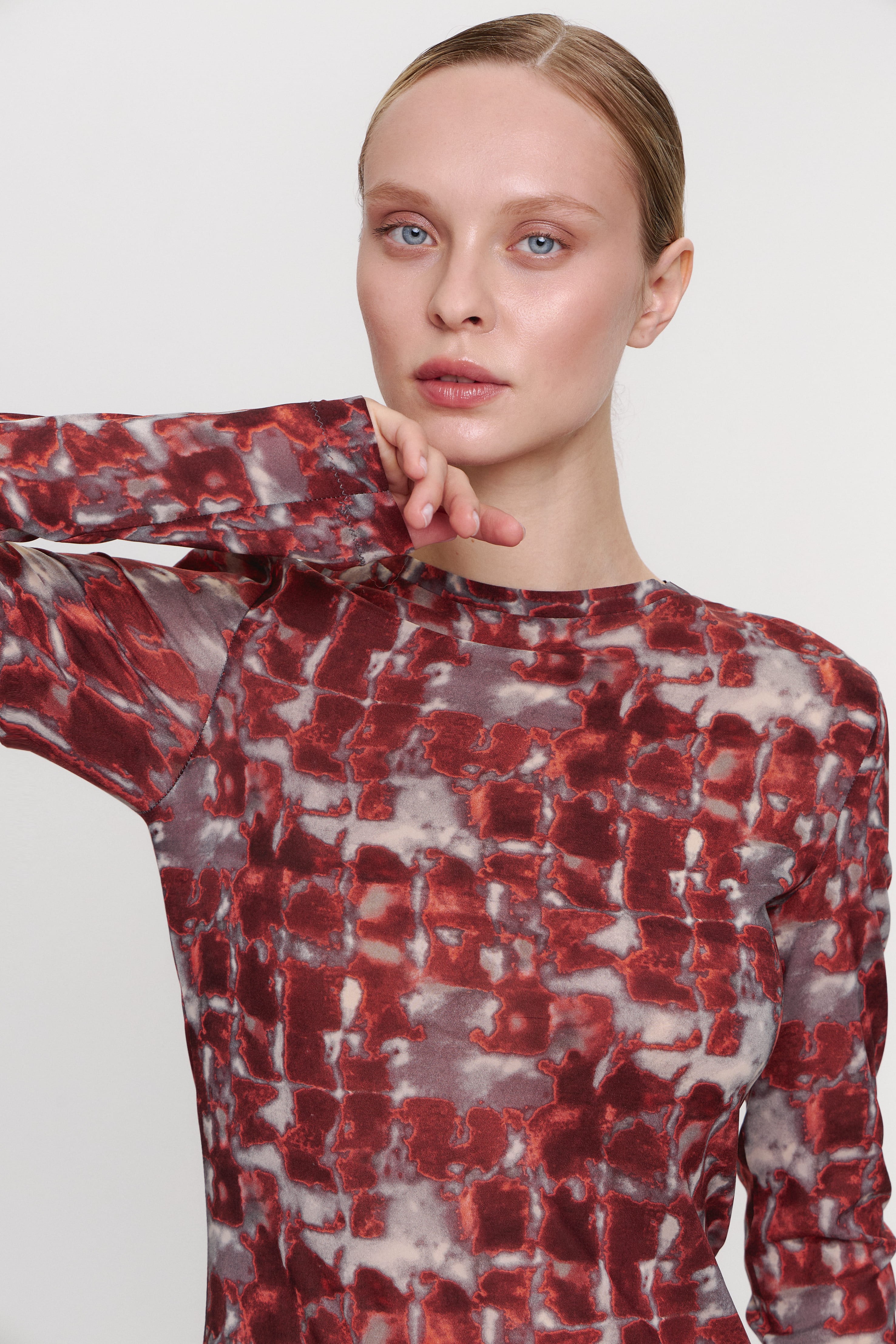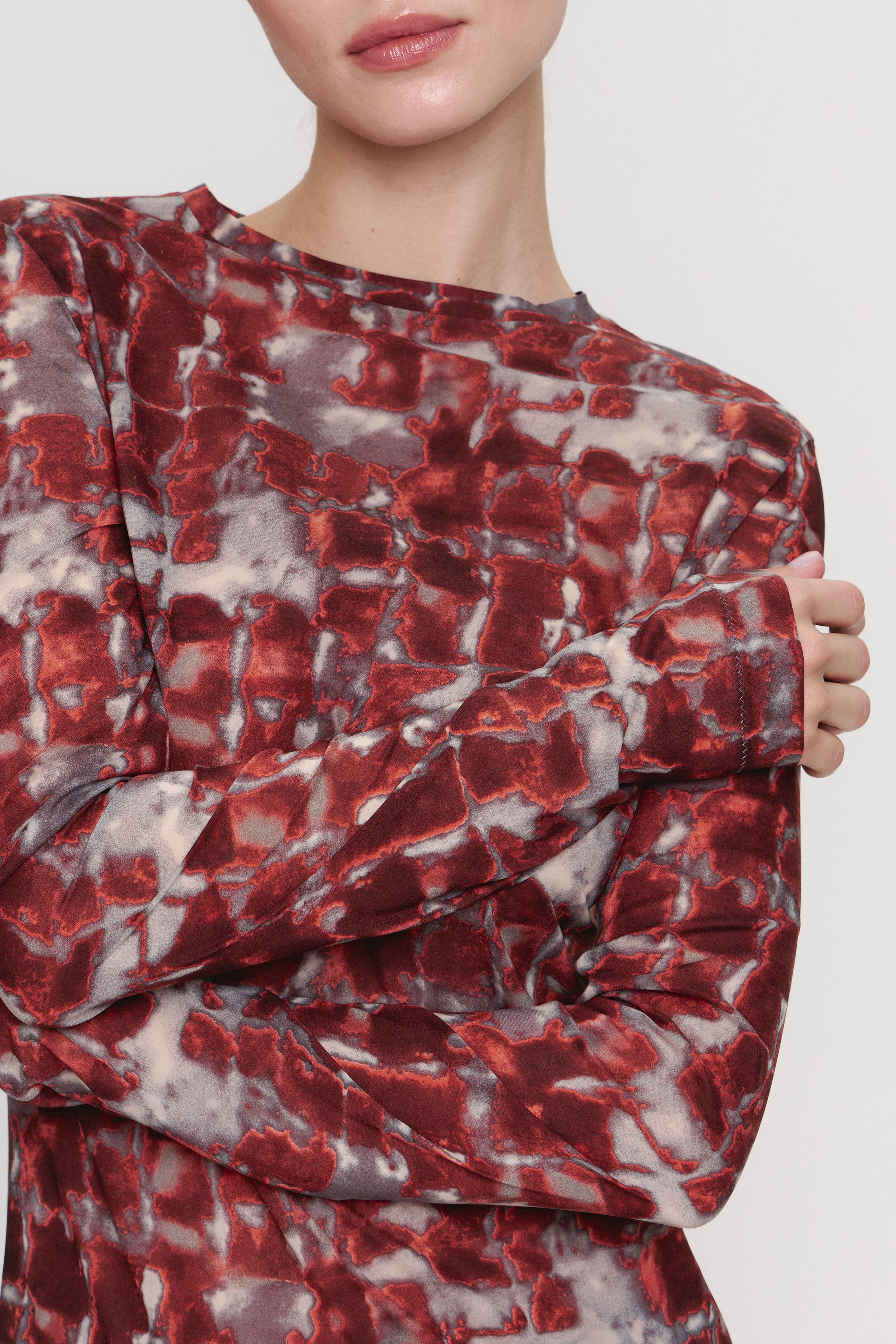 Rosso Francia – лимитированная капсульная коллекция из натурального шелка с принтом, вдохновленным богатой историей красного мрамора Rosso Francia, что придаёт изделиям особую изысканность и элегантность. Этот исторический французский мрамор ярко-красного цвета с арабесковыми прожилками обладает уникальным шармом.