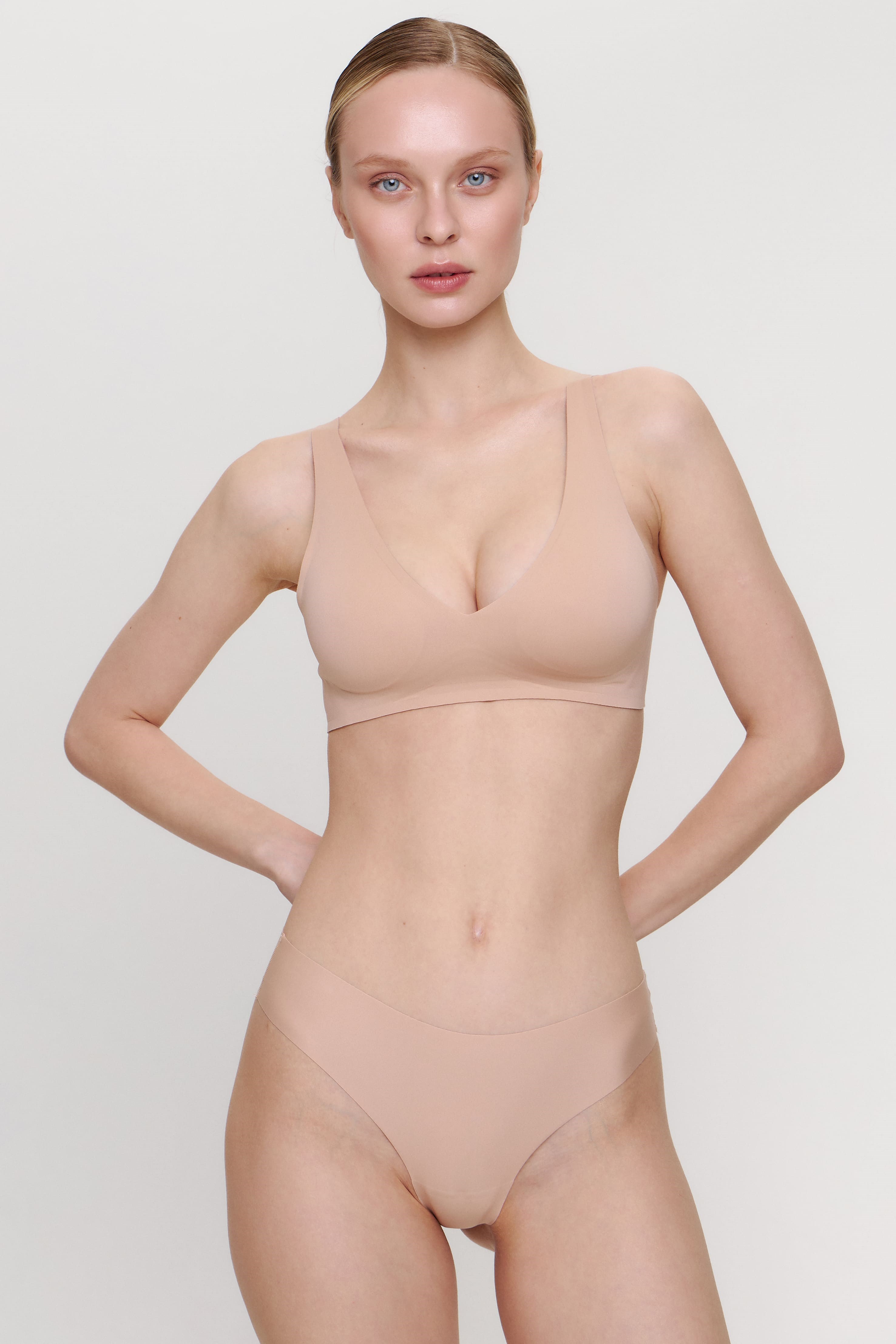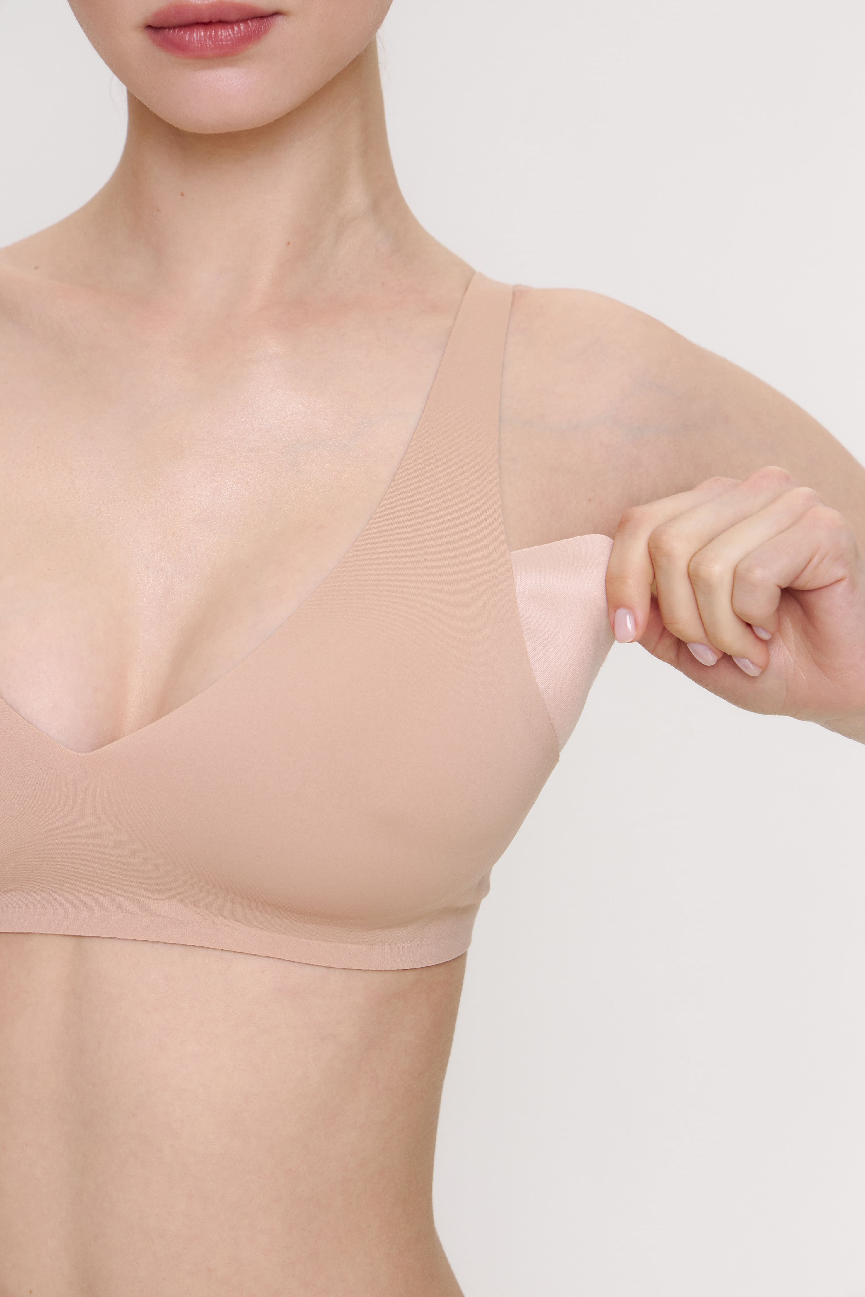 Топ с тонкой треугольной чашкой и вкладышем Lisse пудровый