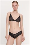 Модель выполнена из роскошного итальянского кружева. Тонкая и мягкая резинка по верхнему срезу обеспечивает идеальную посадку, а фистоны на ножках добавляют изящества. Бантик по центру легко убрать, если вы предпочитаете минимализм.