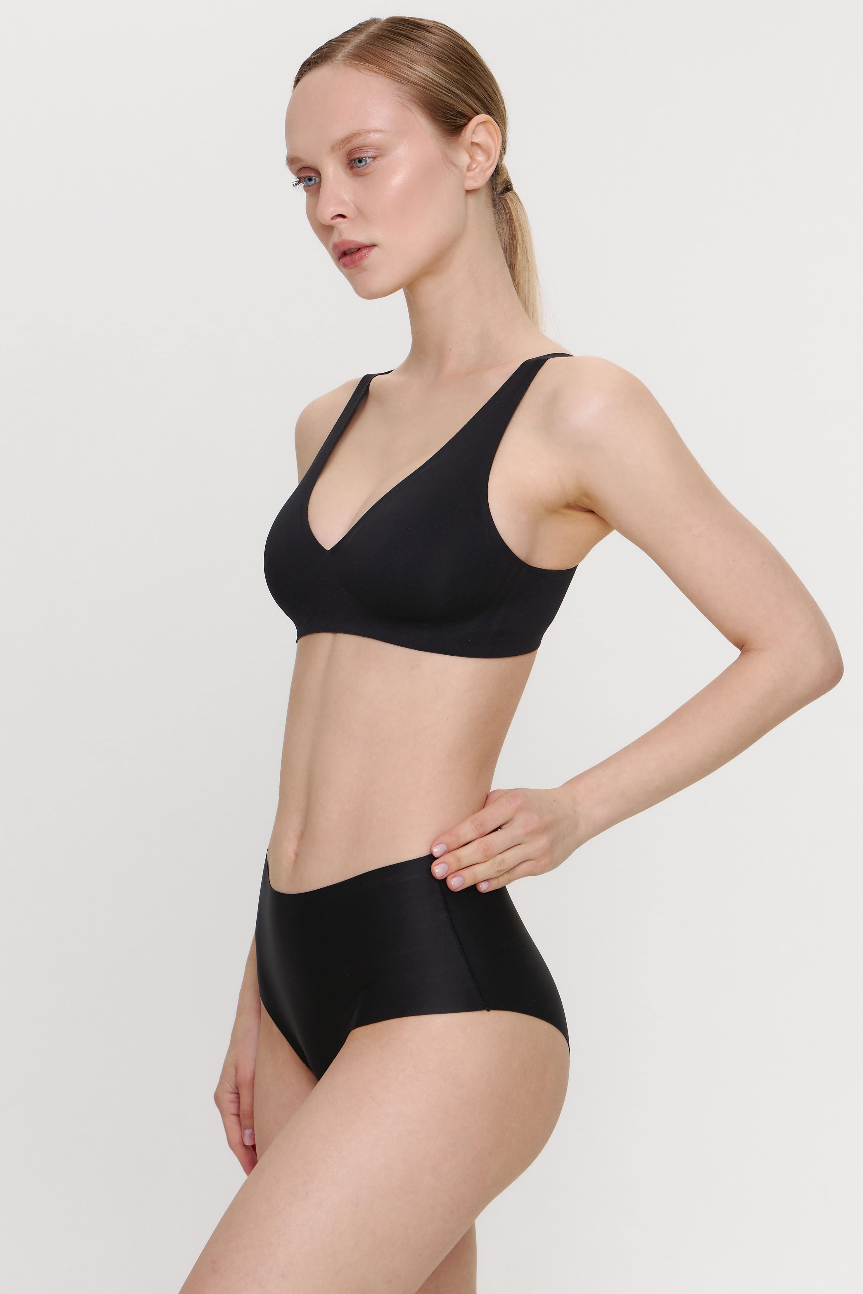 Модель выполнена из микрофибры с эффектом soft touch. Края обработаны технологией лазерной резки, что делает изделие совершенно незаметным под одеждой. Ластовица из 100% хлопка.